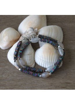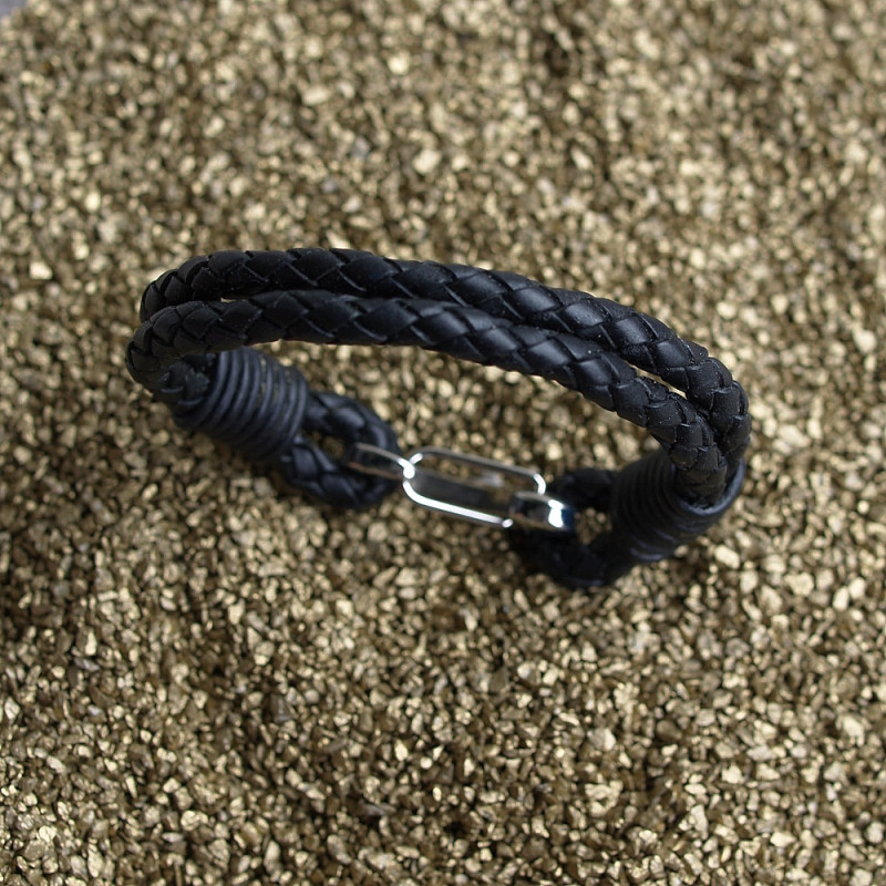 Schönes zweireihiges Armband aus Leder mit Edelstahlschliesse