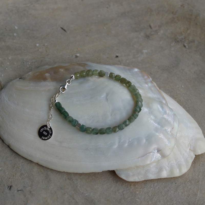 Wunderschönes Armband aus natürlichem grünem Apatit und Silber 925, Cubes 5 mm