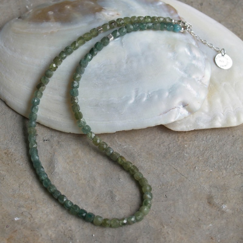 Wunderschöne Halskette aus natürlichem grünen Apatit und Silber 925, Cubes 5 mm