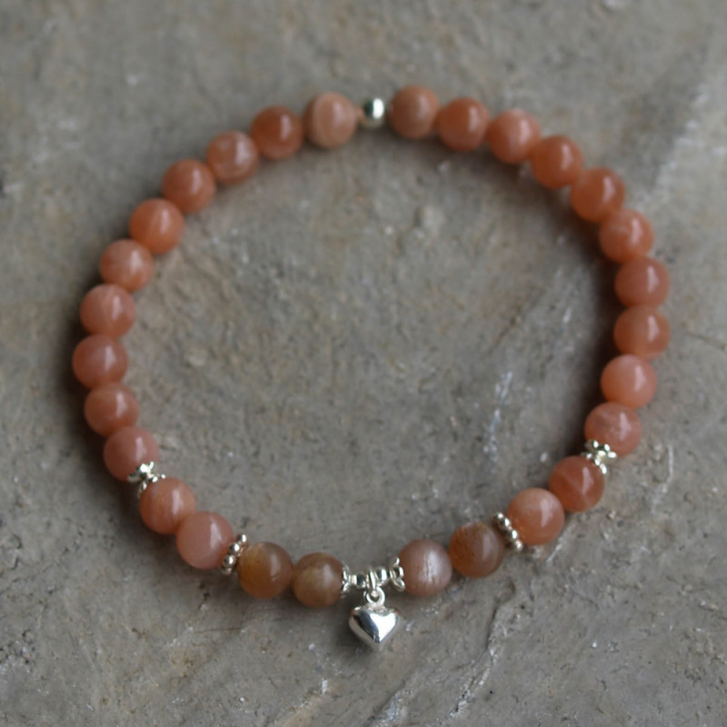 Wunderschöner oranger Mondstein... elastisches Armband mit Herzanhänger Silber 925