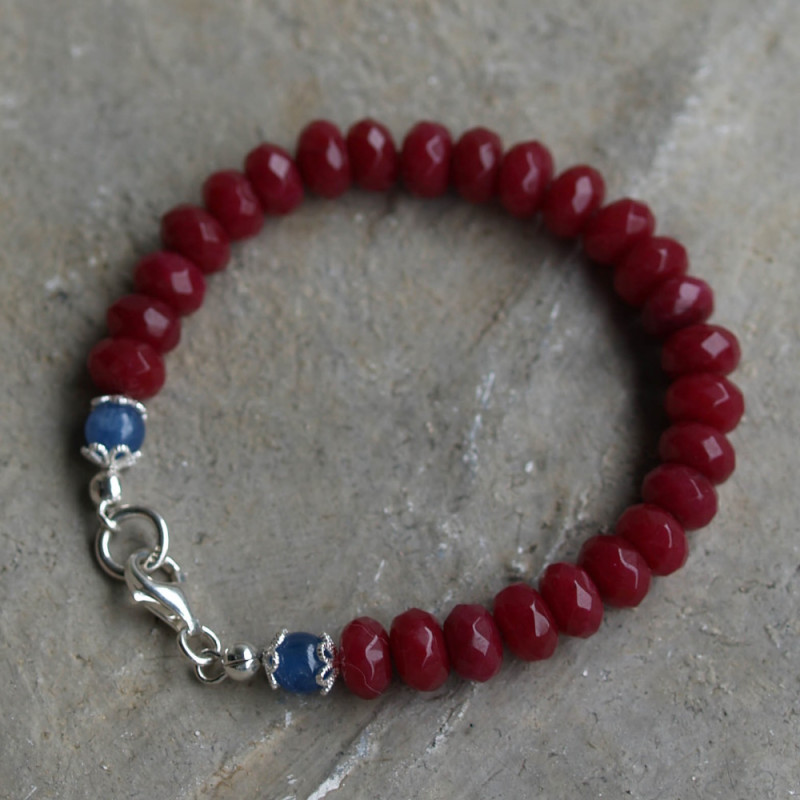 Schmück dich! Leuchtend schönes Armband mit facettiertem Ruby und Kyanit, Silber 925.