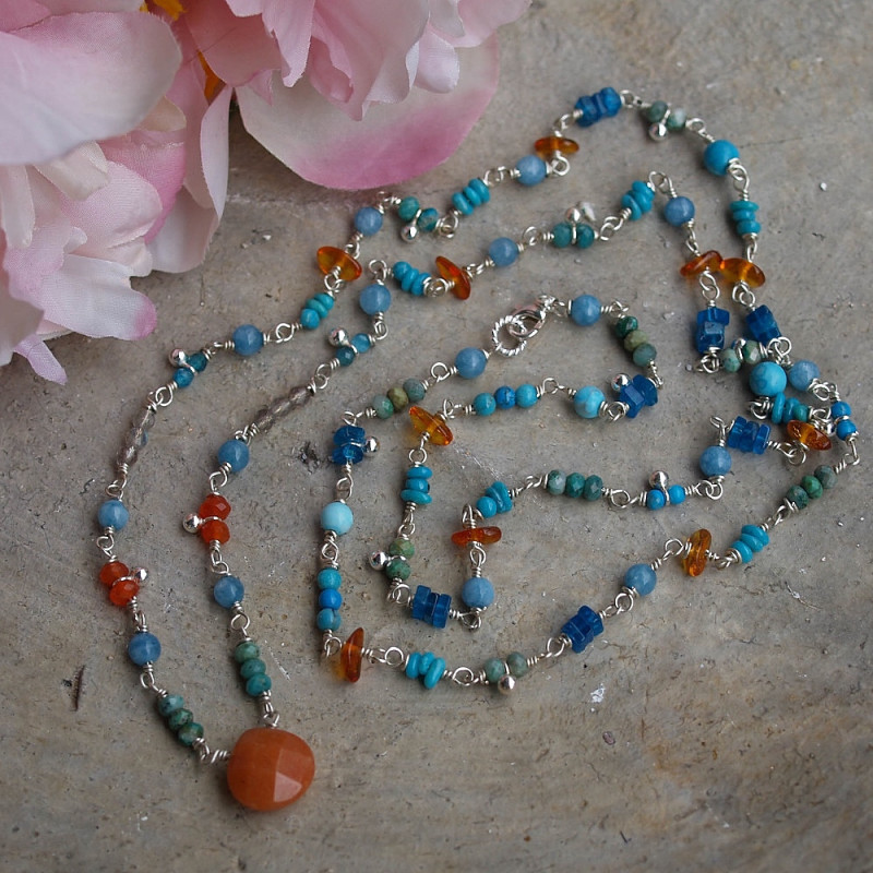 Halskette "Summer" mit diversen Edelsteinen (Türkis, Apatit, Amazonit usw.), Silber 925