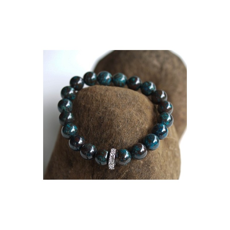 Sommerlaune! Elastisches Armband aus Chrysokoll mit Einsatz aus Silber 925 rhodiniert und Zirkonia. Länge des Armbandes ca. 19.5 cm.