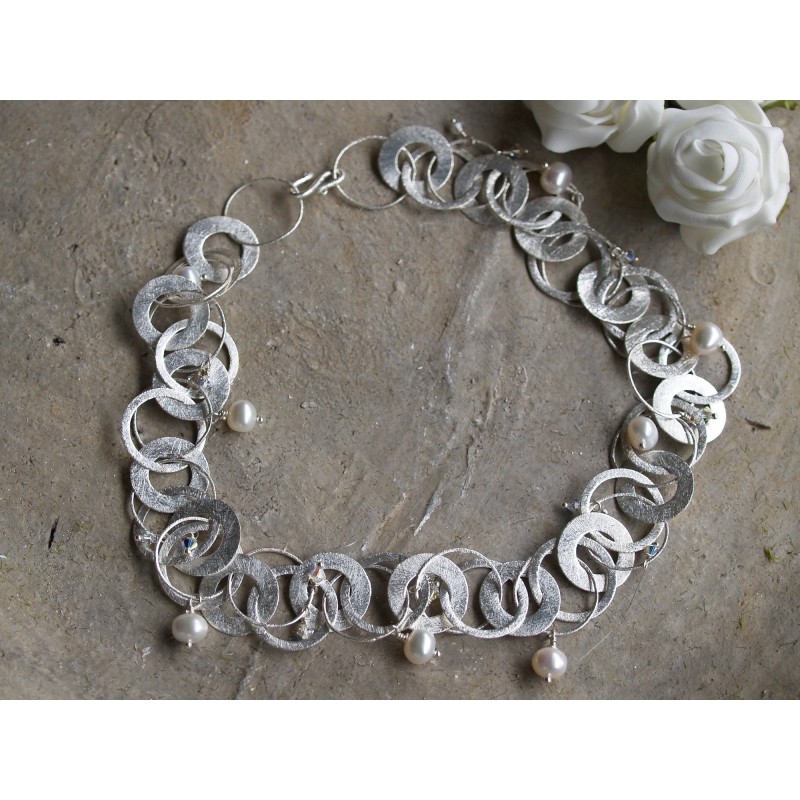 Halskette aus Silber mit Süsswasserperlen und Swarovski-Kristallen