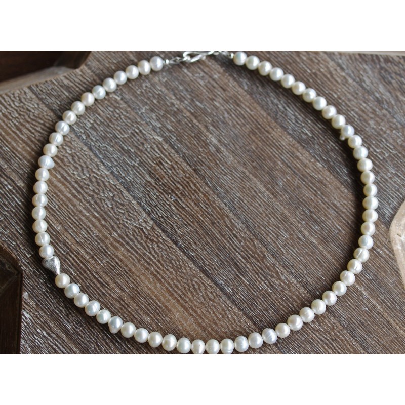 Herzig... Halskette aus weissen Süsswasserperlen mit Herzchen und Verschluss aus Silber 925. Länge der Halskette ca. 45 cm.