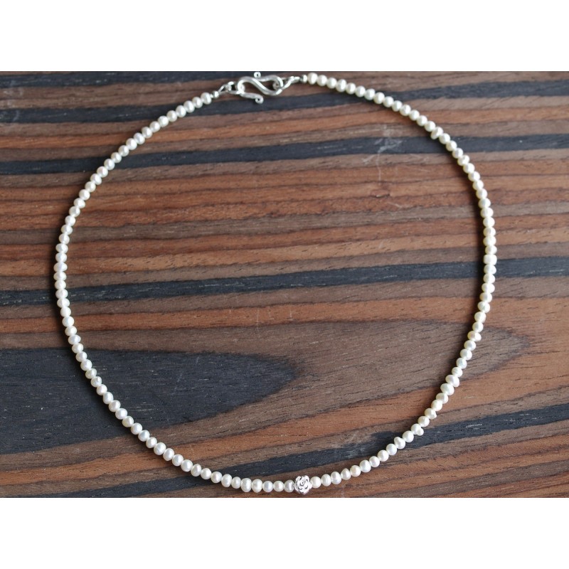 Blumig... Halskette aus weissen Süsswasserperlen mit Blümchen und Verschluss aus Silber 925. Länge der Halskette ca 45 cm.