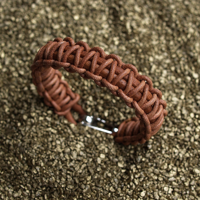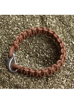 Geflochtenes Armband aus cognac-farbigem Leder mit Edelstahlschliesse