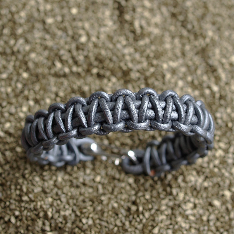 Armband aus silberfarbigem Leder mit Edelstahlschliesse