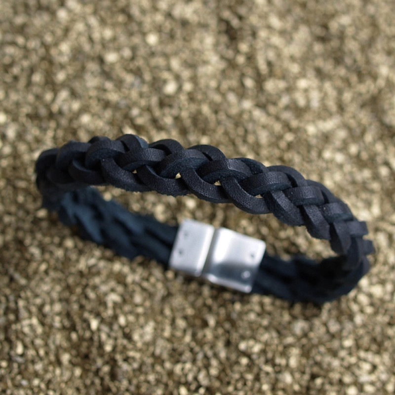 Armband aus schwarzem Leder mit Edelstahlschliesse