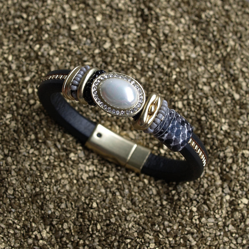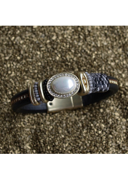Armband aus dunkelbraunem Leder mit vergoldeten Applikationen