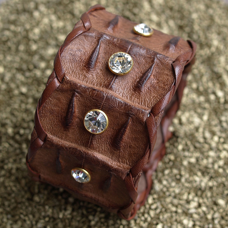 Wunderschönes Armband aus braunem Leder, Breite 4 cm, mit Zirkonia