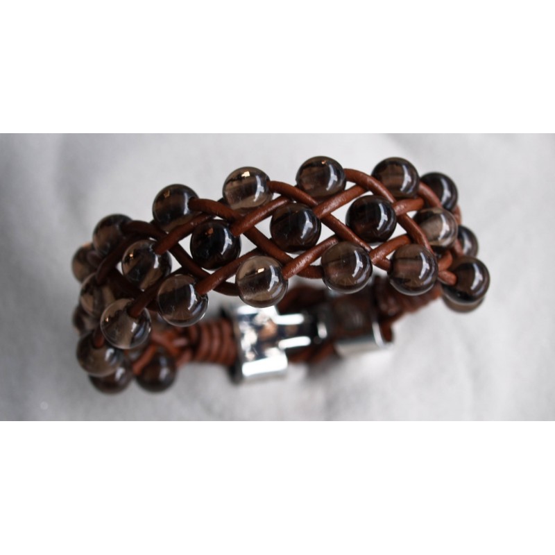 Ton in Ton... Armband aus braunem Leder mit Rauchquarz und Edelstahl-Schliesse. Länge ca. 19-20 cm.