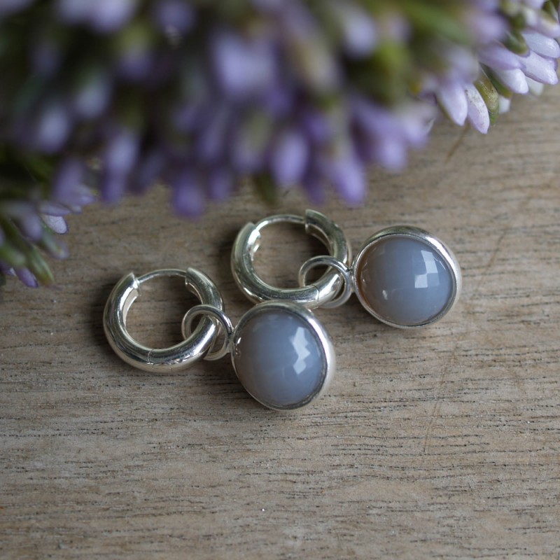 Wunderschöne Ohrcreolen aus Silber 925 mit facettiertem grauem Mondstein
