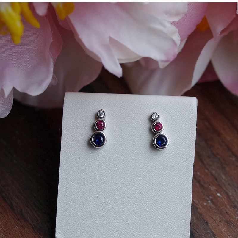 Etwas Farbe geht immer... Ohrstecker aus Silber 925, rhodiniert, mit Zirkonia (weiss, rot, blau)