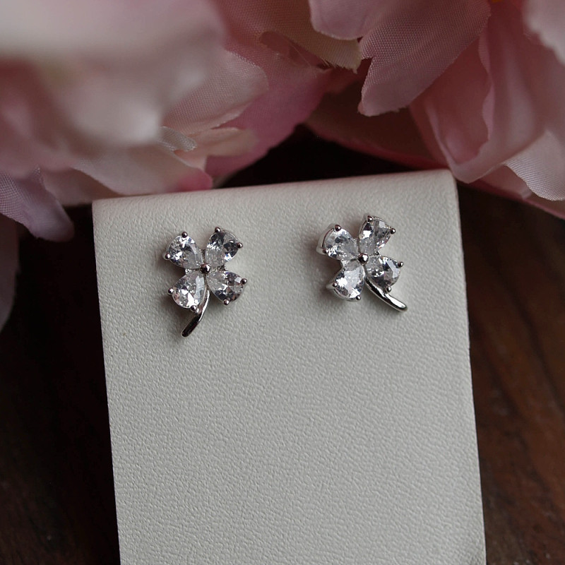 Wunderschön funkelnde Kleeblatt-Ohrstecker, Silber 925 rhodiniert, Zirkonia