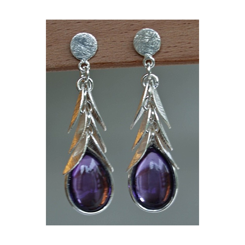 Traumhaft schön! Orhänger aus Silber 925 mit Amethyst-Tropfen. Länge der Ohrstecker 4 cm.