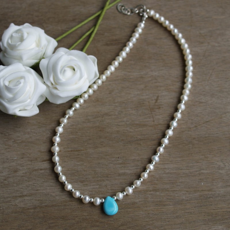 Edel und charmant... Halskette aus weissen Süsswasserperlen, Silber 925 und Achat