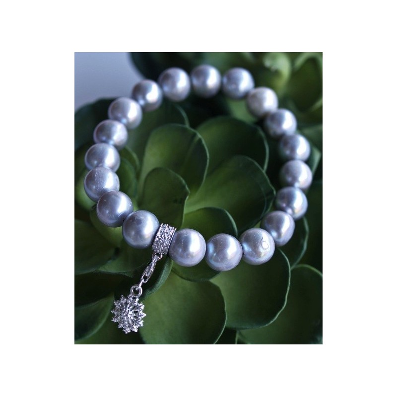 Modisches Accessoire! Elastisches Armband aus silbergrauen Süsswasserperlen und Anhänger-Clip aus Silber 925 mit Zirkonia. Charm: Schneeflocke. Länge des Armbandes ca. 19.5 bis 20 cm.