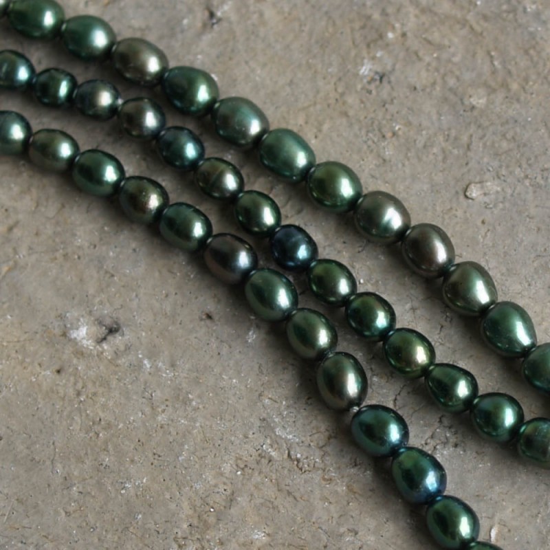 Süsswasserperlen, Reiskorn-Form, grün eingefärbt