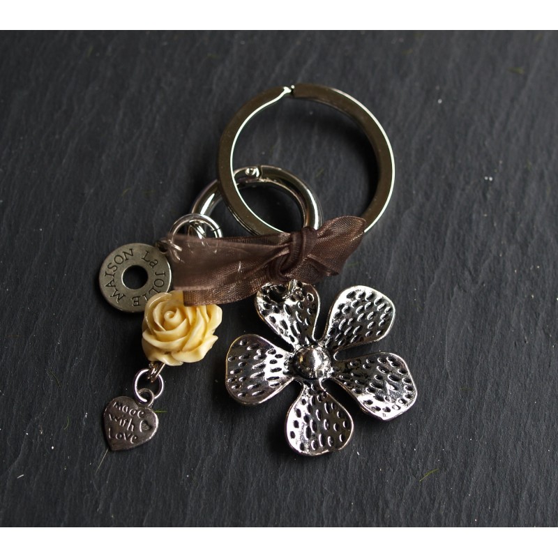 Aus der Serie "Blumig": Schlüsselanhänger/Taschenbaumler Blume mit gelber Rose und braunem Schleifchen. Masse Blume: 3 x 3 cm.