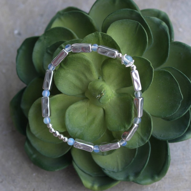 Elastisches Armband mit Zamak, Silber 925 und Opalith