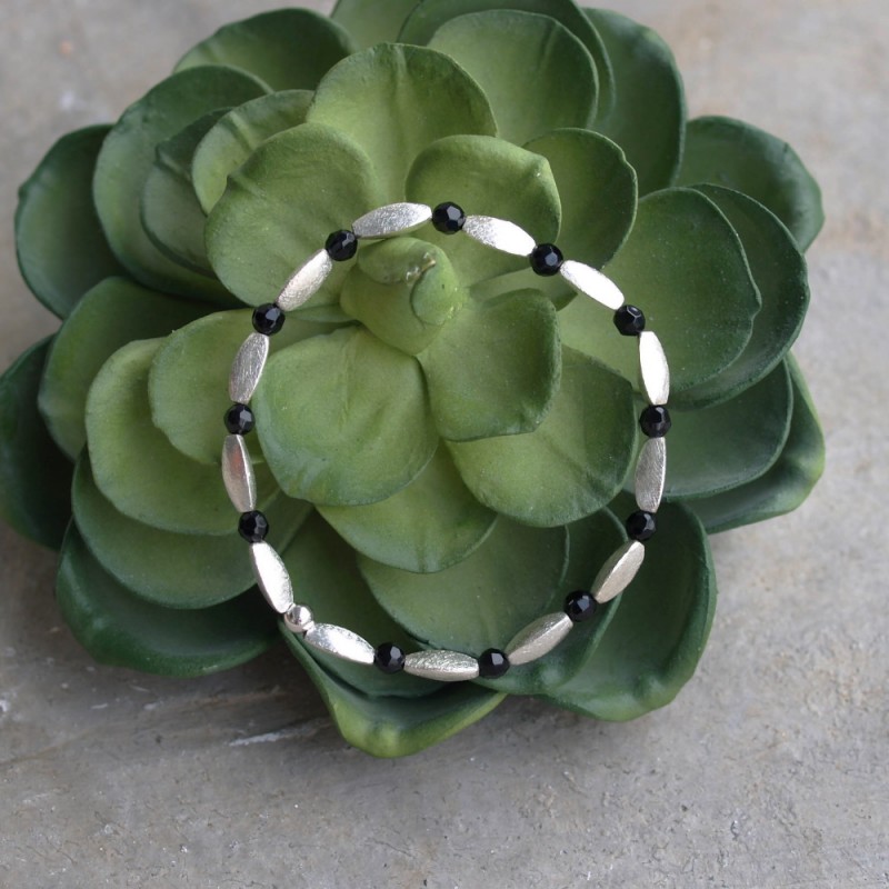 Ein feines elastisches Armband aus Silber 925 und Onyx. Sieht in Kombi mit anderen Armketten, aber auch einzeln getragen wunderschön aus.